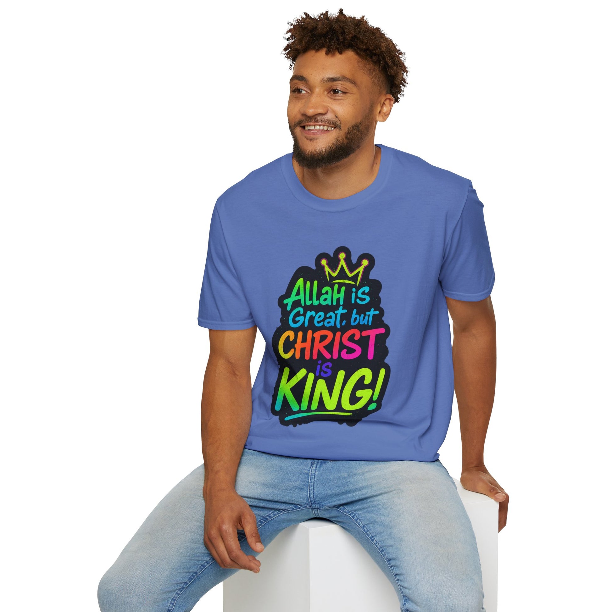 "Allah is Great but Christ is King!" Unisex Softstyle Tshirt