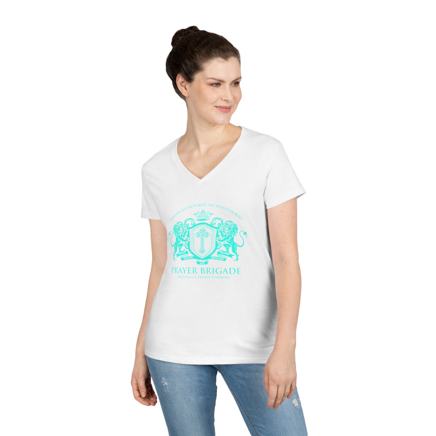 ARS Prayer Brigade Ladies' V-Neck T-Shirt (Purple with Aqua Logo)