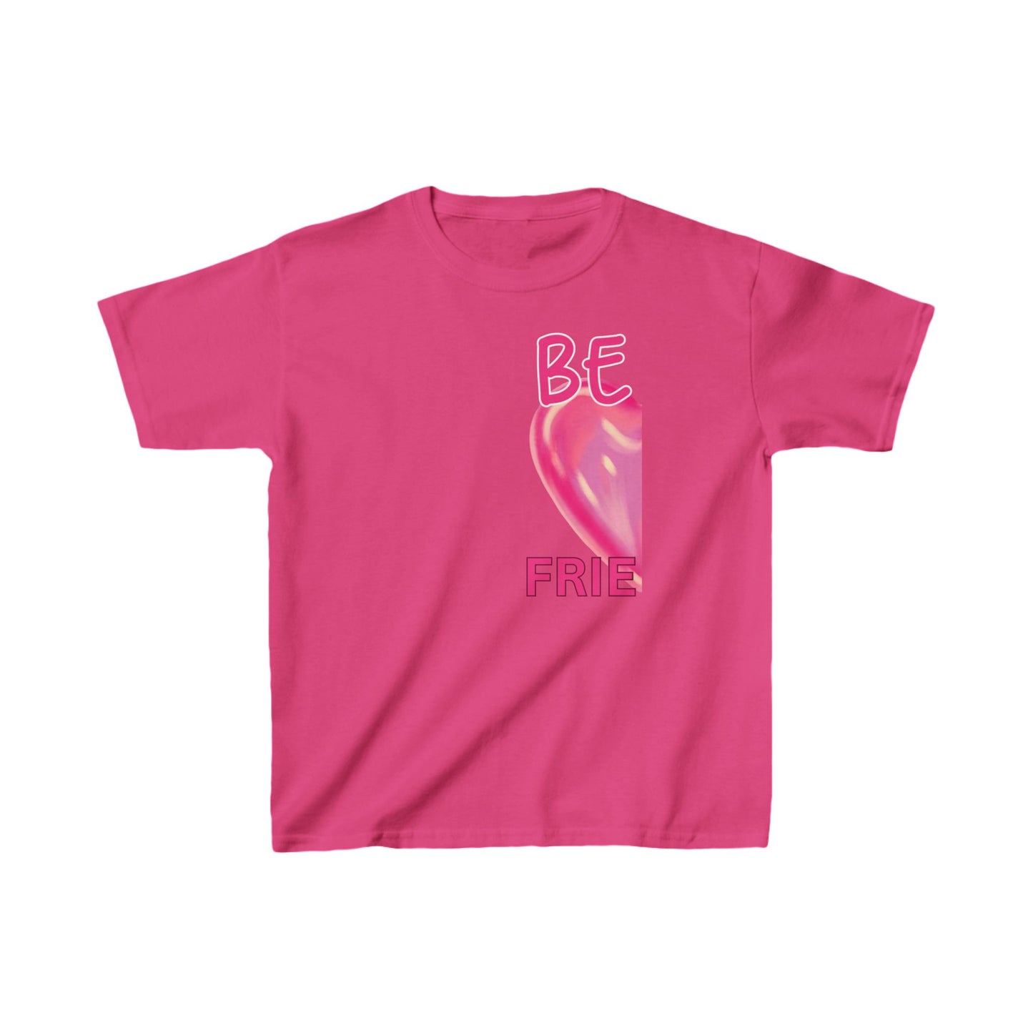 The kids heavy cotton tee is perfect for everyday use. The fabric is 100% cotton for solid colors. Polyester is included for heather-color variants. These fabrics are prime materials for printing. The shoulders have twill tape for improved durability. The collar is curl resistant due to ribbed knitting. There are no seams along the sides.