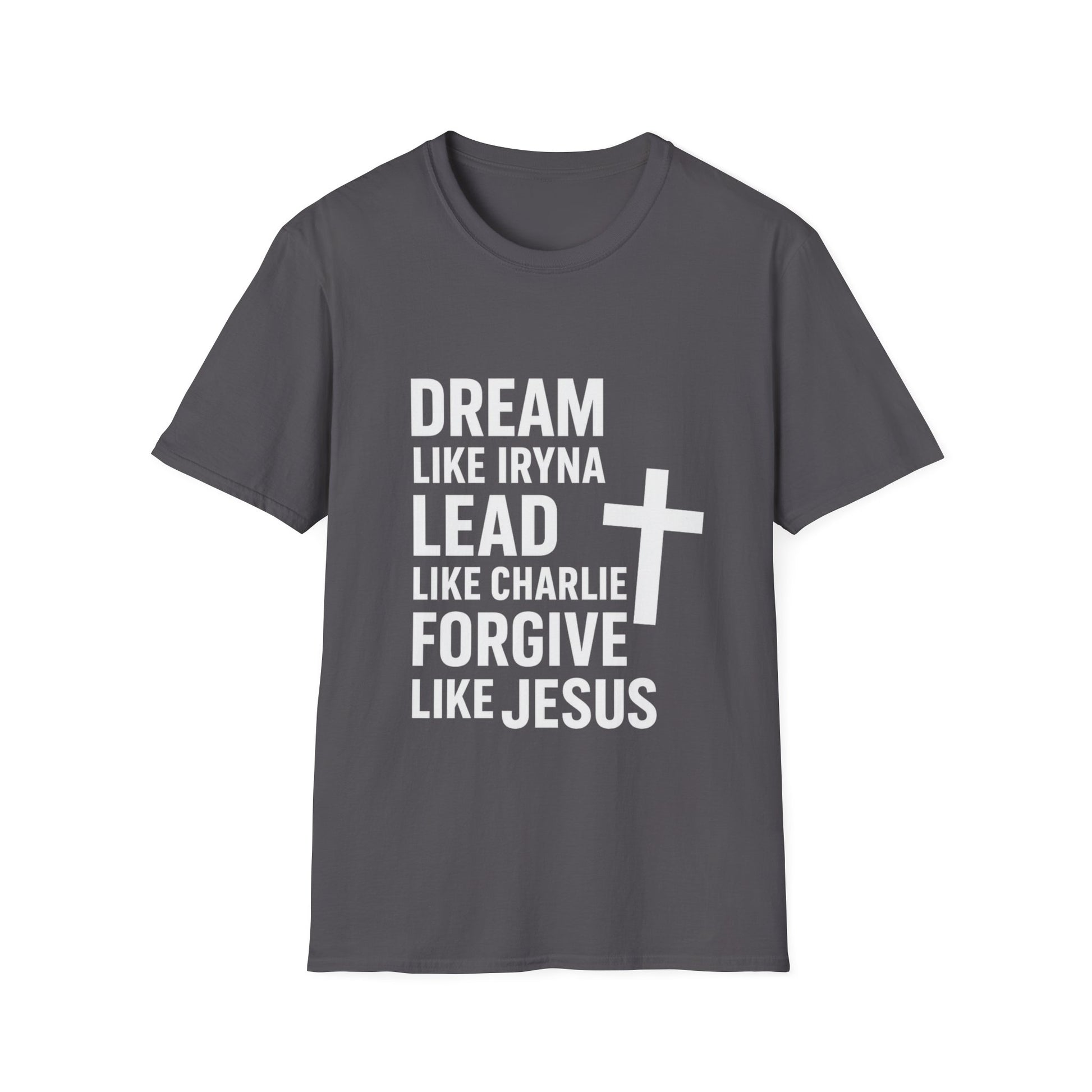 Dream, Lead, Forgive Men's Unisex Softstyle Tshirt (White Logo)
