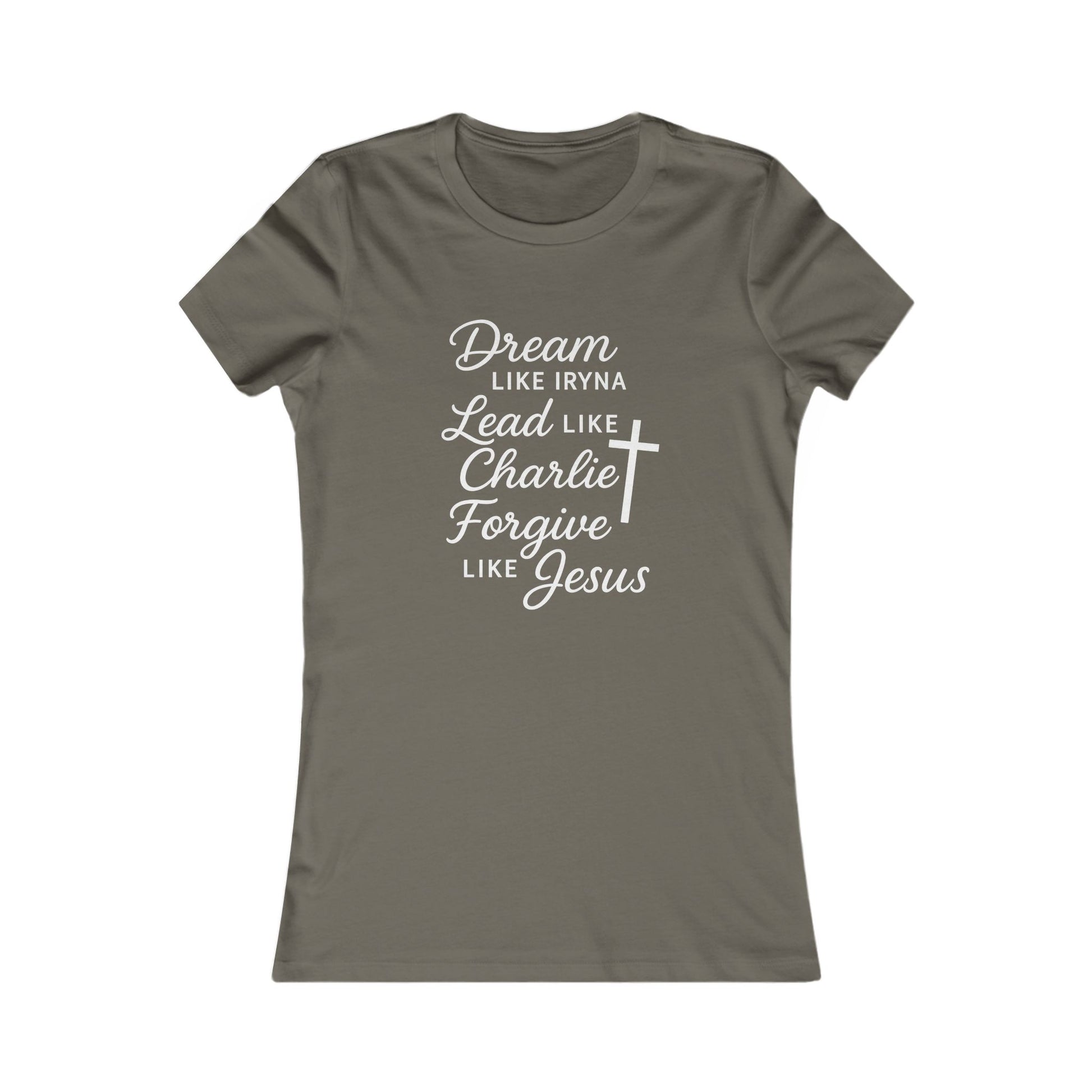 Dream, Lead, Forgive Women's Fitted Tshirt (White Logo)