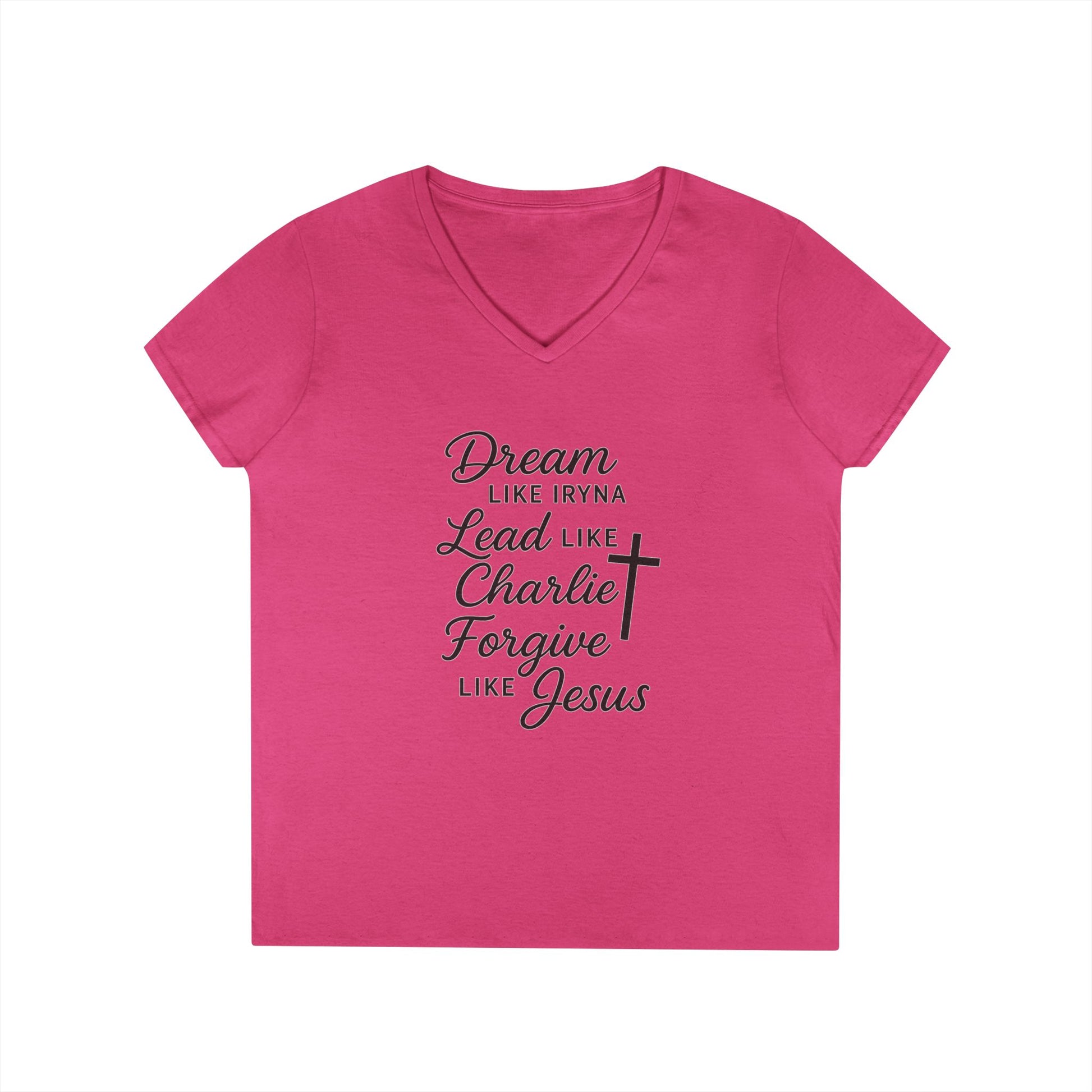 Dream, Lead, Forgive Women's V-neck Semi-Fitted Tshirt (Black Logo)