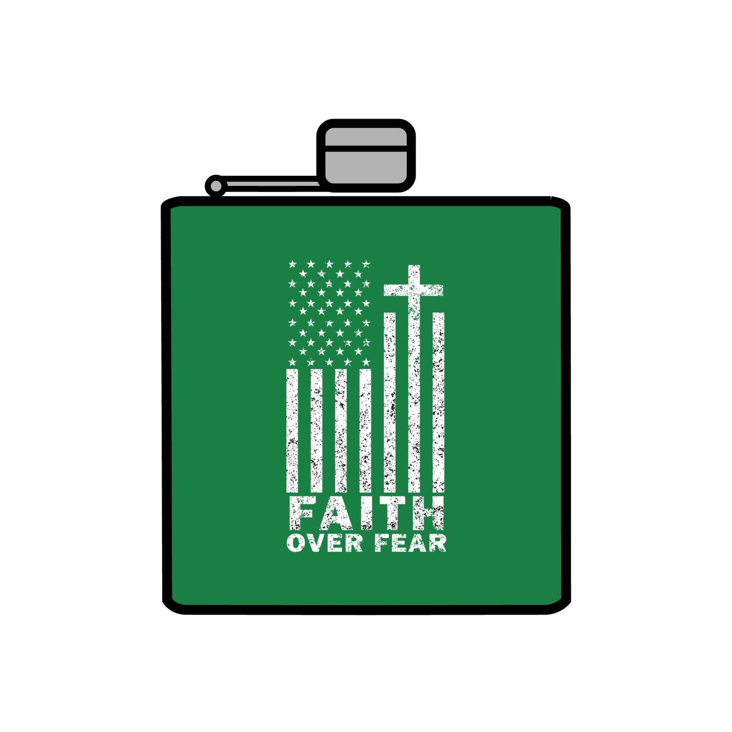 Faith Over Fear Flag Stainless Steel Flask, 6oz
