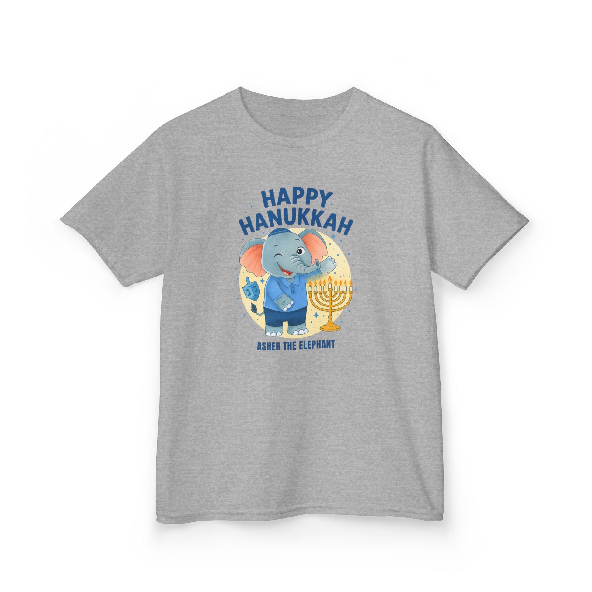 Happy Hanukkah Asher the Elephant Kids Tshirt (Wink Logo)