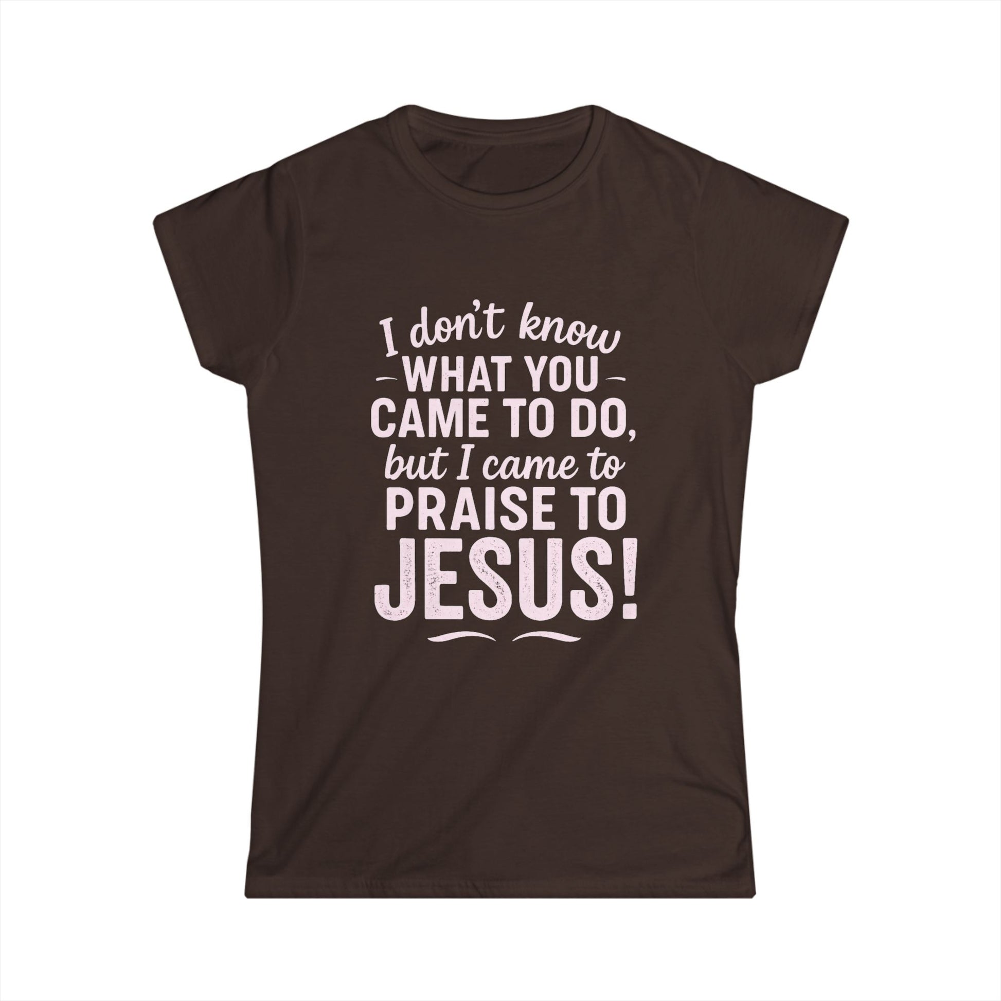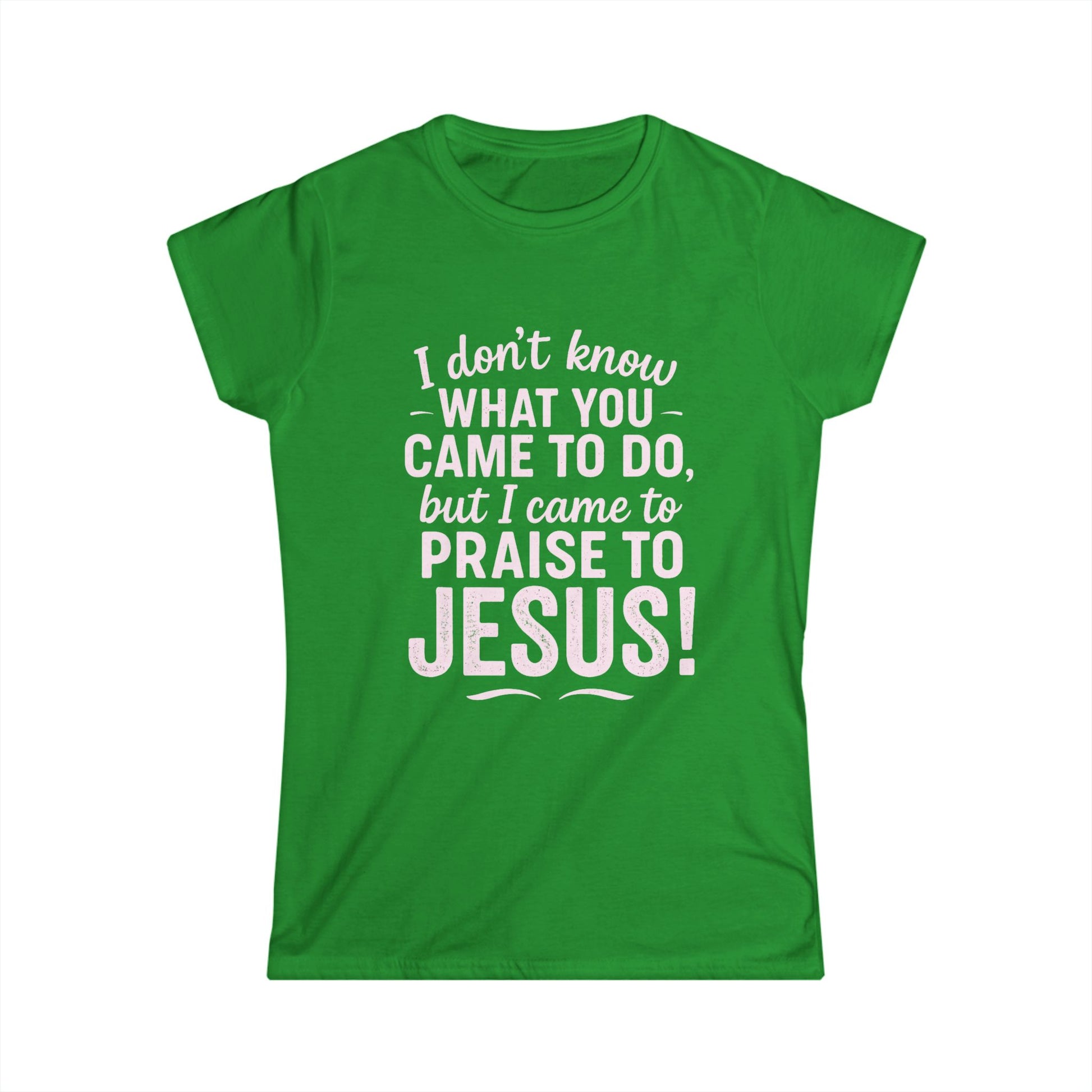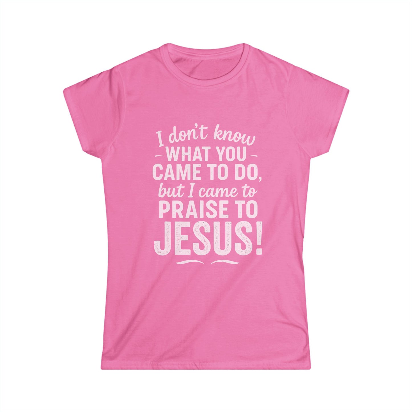 "I Came to Praise Jesus" Women's Softstyle Fitted Shirt (Light Pink Logo)