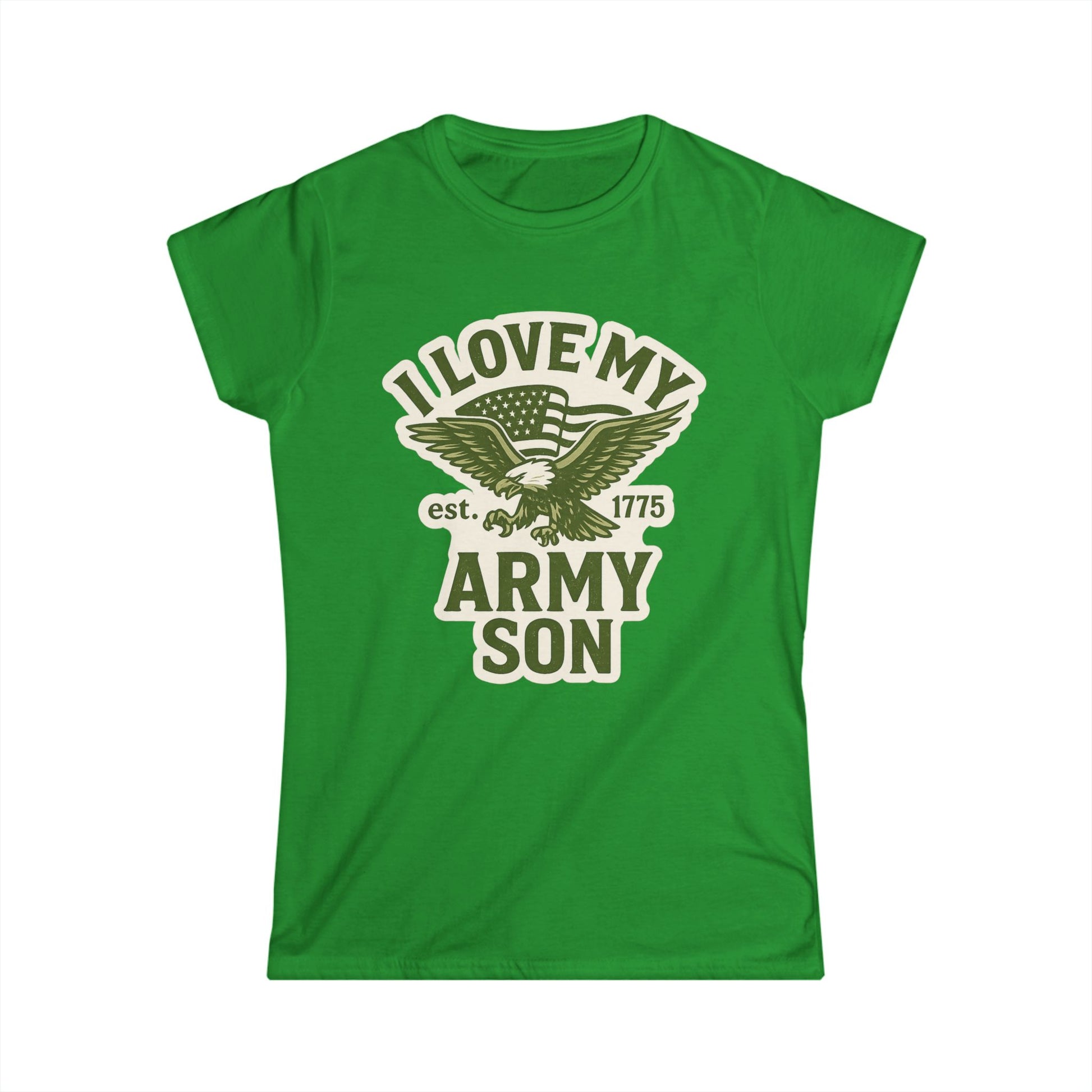 Elevate your casual wardrobe with this Women's Softstyle Tee, perfect for expressing your pride in your loved ones. This tee combines comfort and style, making it ideal for everyday wear or special occasions. The soft, lightweight fabric feels great against the skin, while the eye-catching design showcases your support for your Army son. It's a wonderful piece to wear during family gatherings, patriotic holidays, or military events, helping you celebrate and honor your loved ones in uniform. Perfect for moms, aunts, and family members who want to proudly display their pride. This tee is a thoughtful gift for holidays like Mother’s Day, Independence Day, or any day you want to show your love and support.