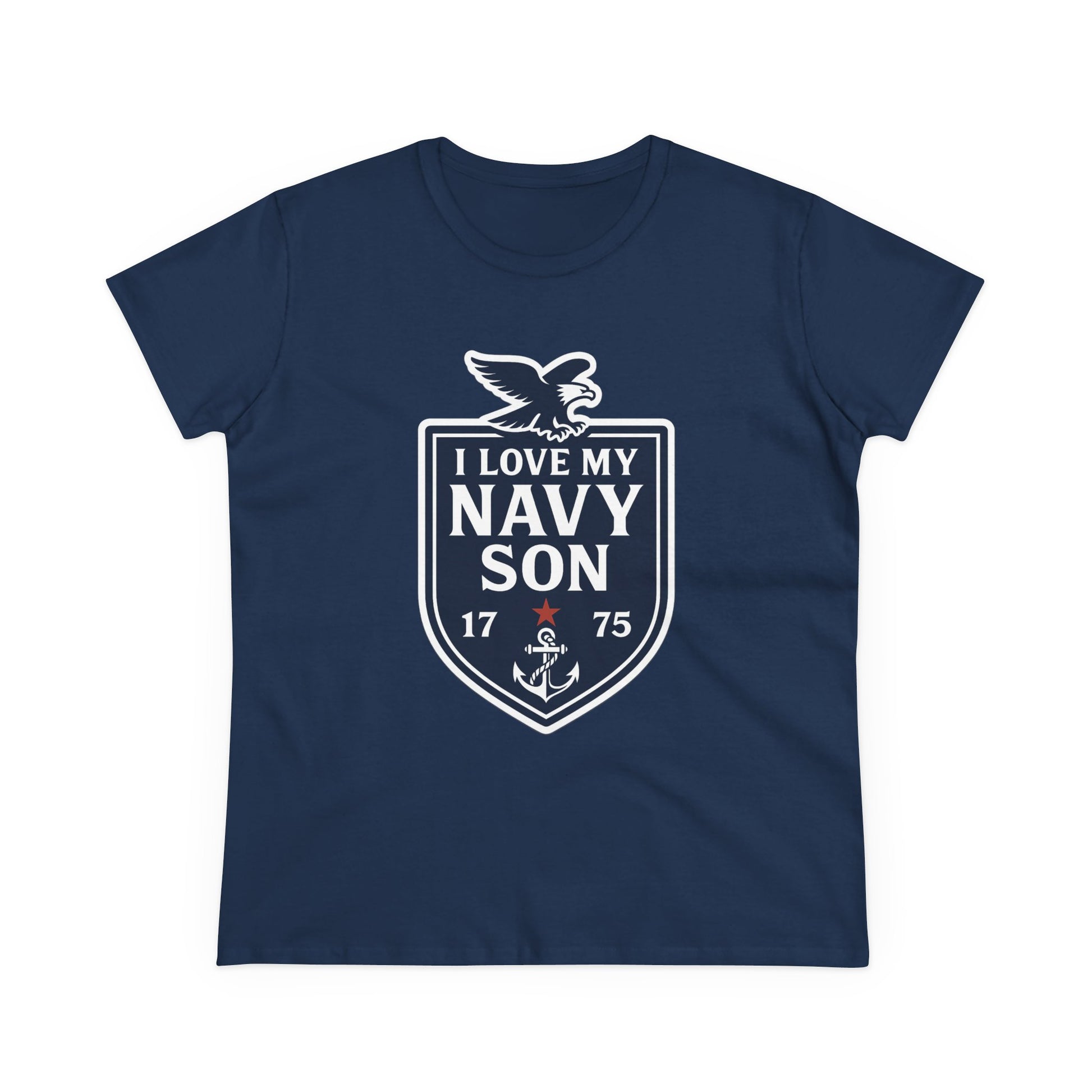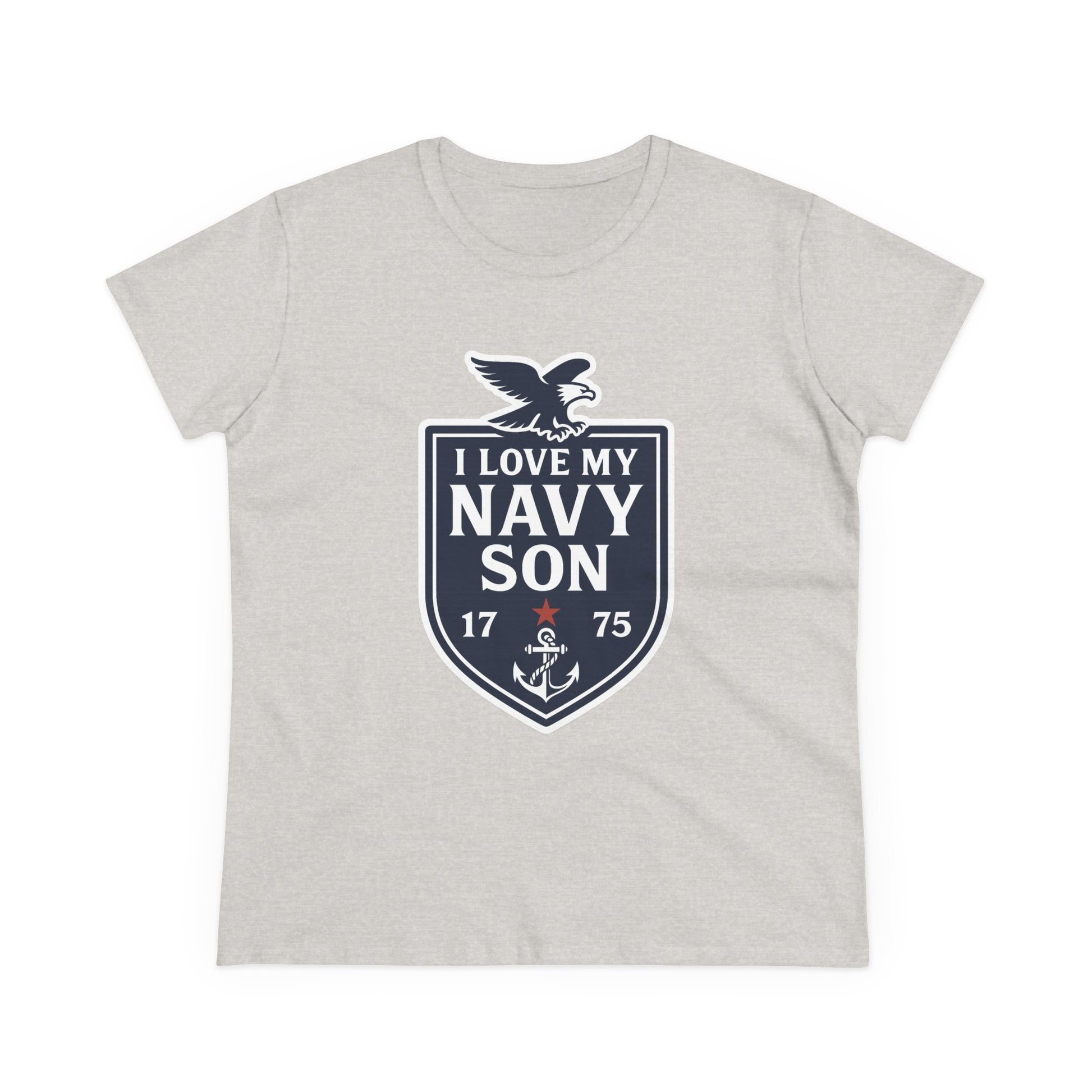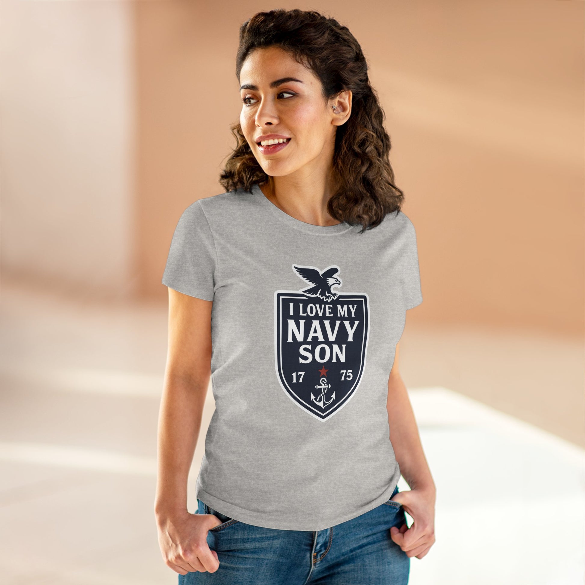 "I Love my Navy Son" Military Pride Patriotic Crest Women's Semi-Fitted Tshirt
