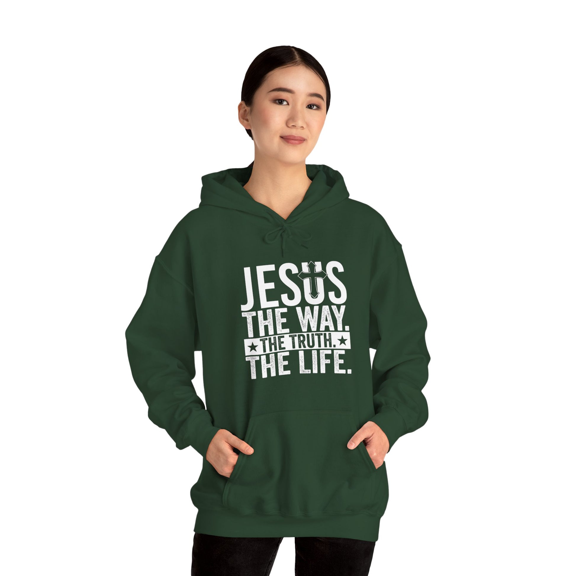 "Jesus The Way, The Truth, The Life" Heavy Fleece Unisex Hoodie (White Logo)