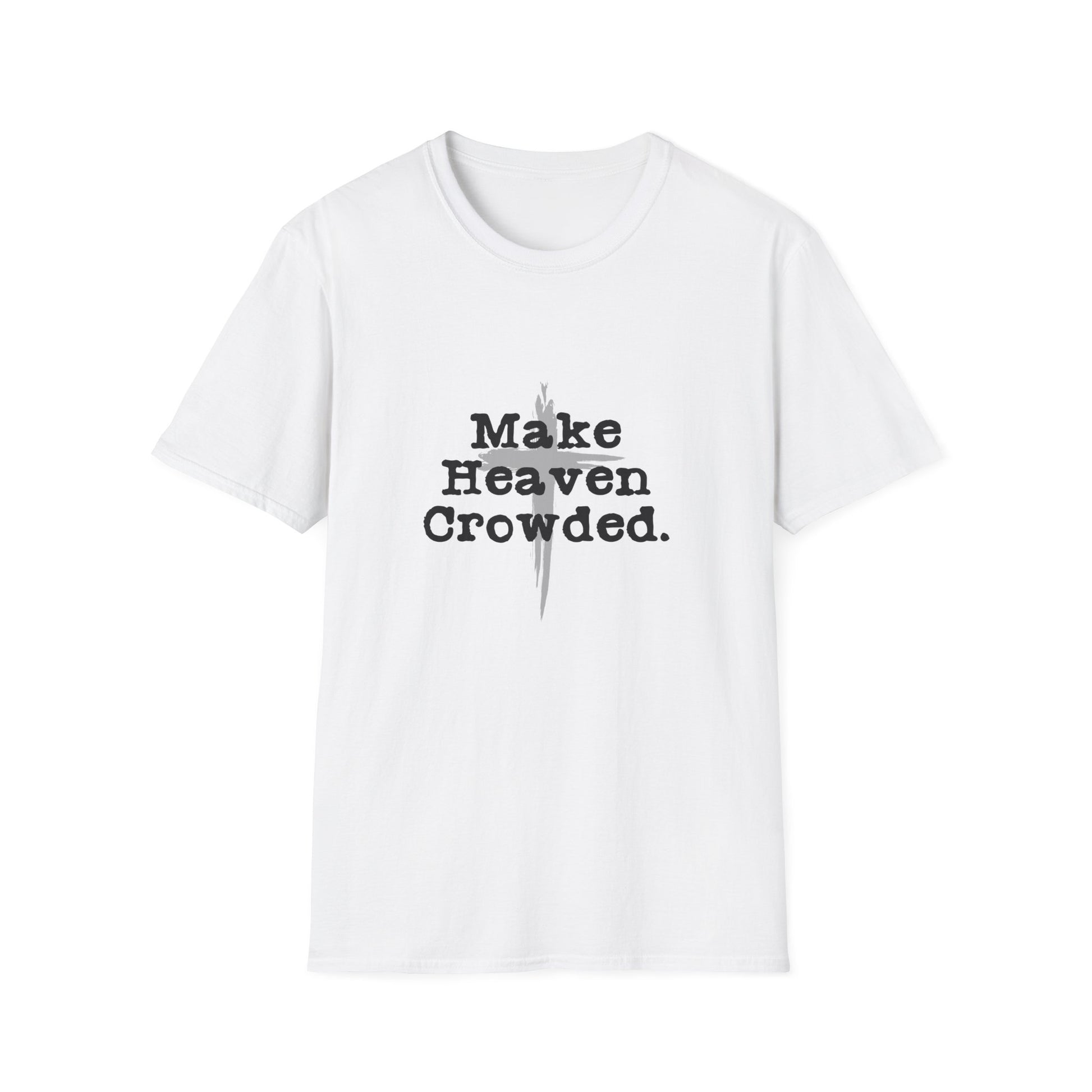 "Make Heaven Crowded" Inspirational Christian Softstyle Tshirt (Black/Gray Logo)