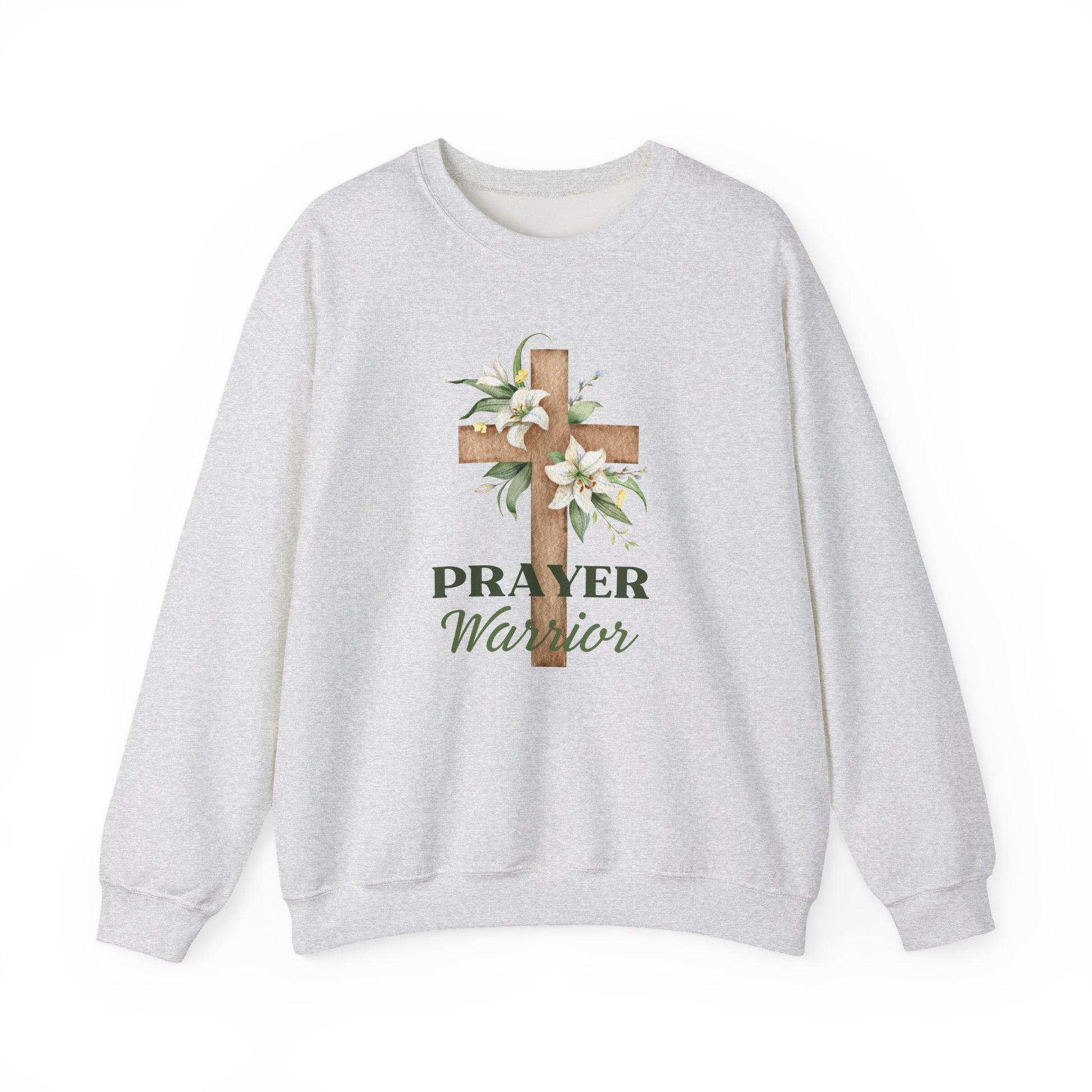 "Prayer Warrior" Christian Women's Sweatshirt (Lilly Cross Logo)