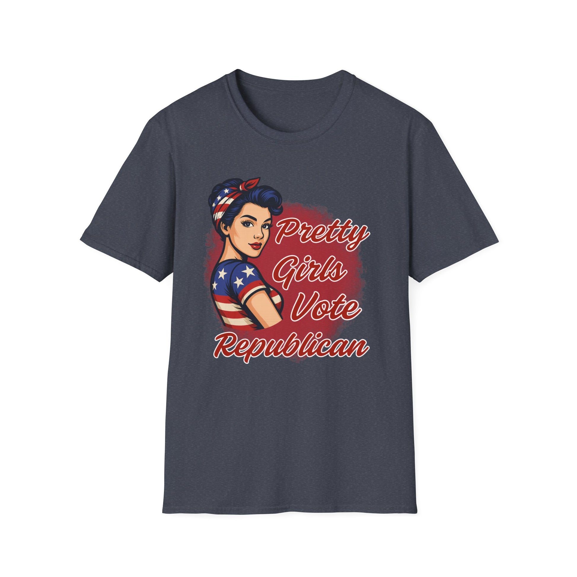 "Pretty Girls Vote Republican" Empowered Women Softstyle T-Shirt Tee (Brunette)