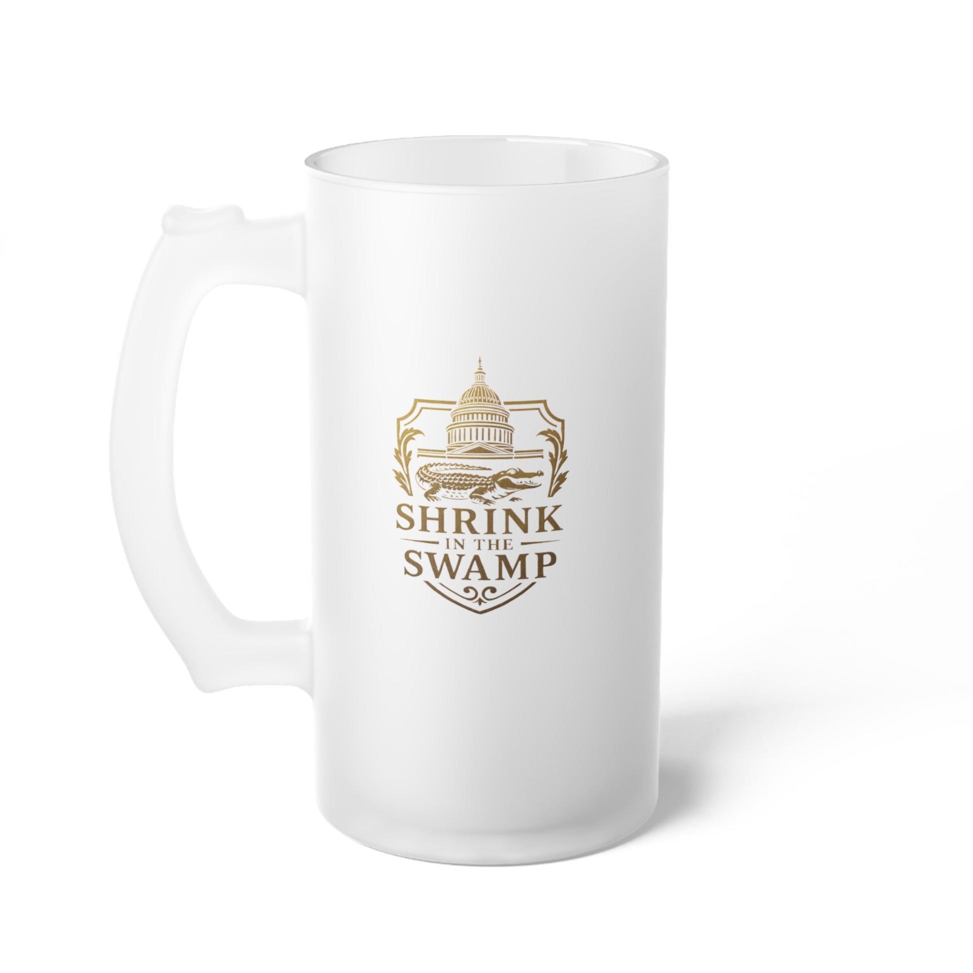Official "Shrink in the Swamp" frosted beer mug - do you part to shrink the swamp! Perfect gift for politicos and fans.